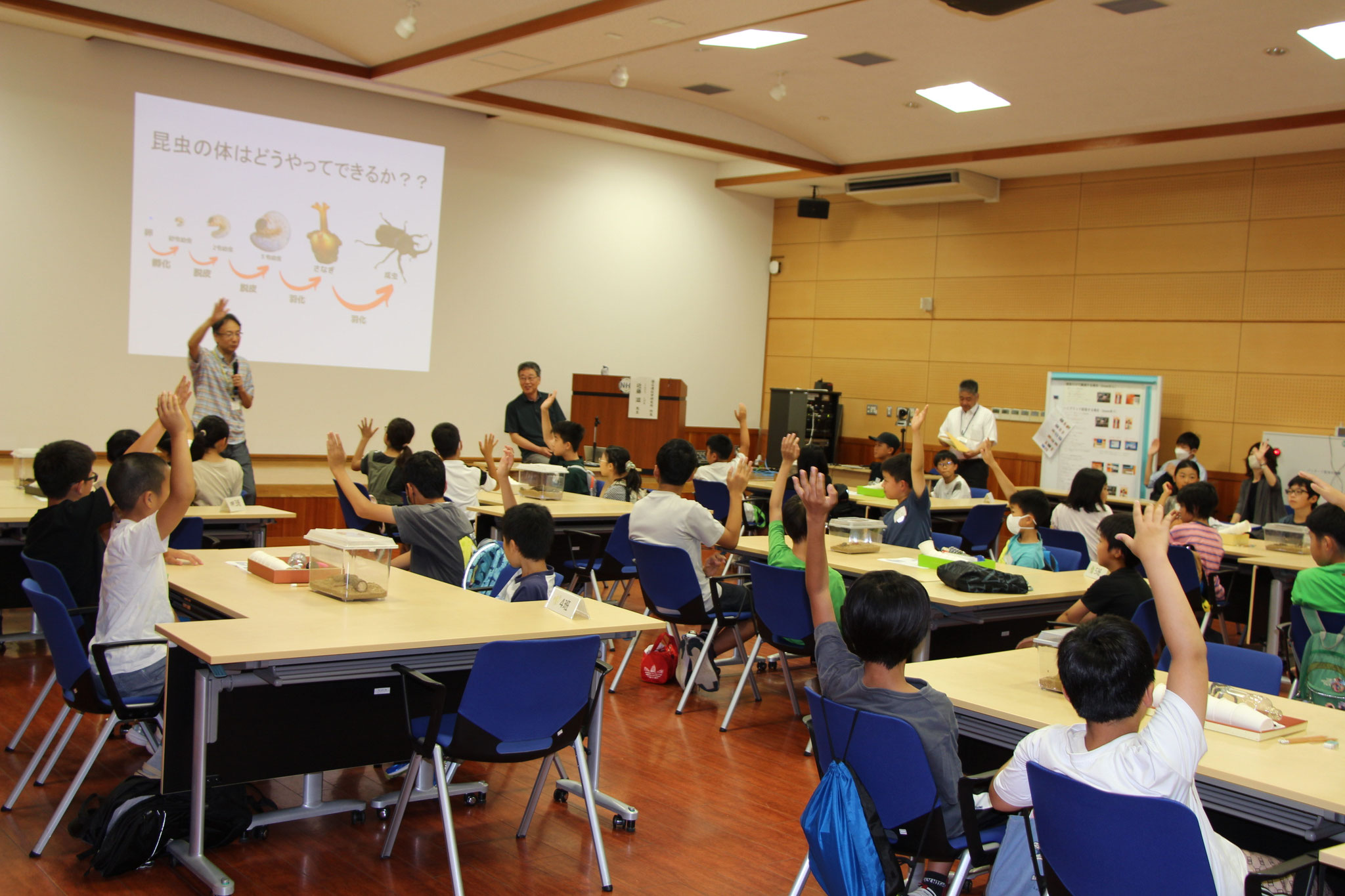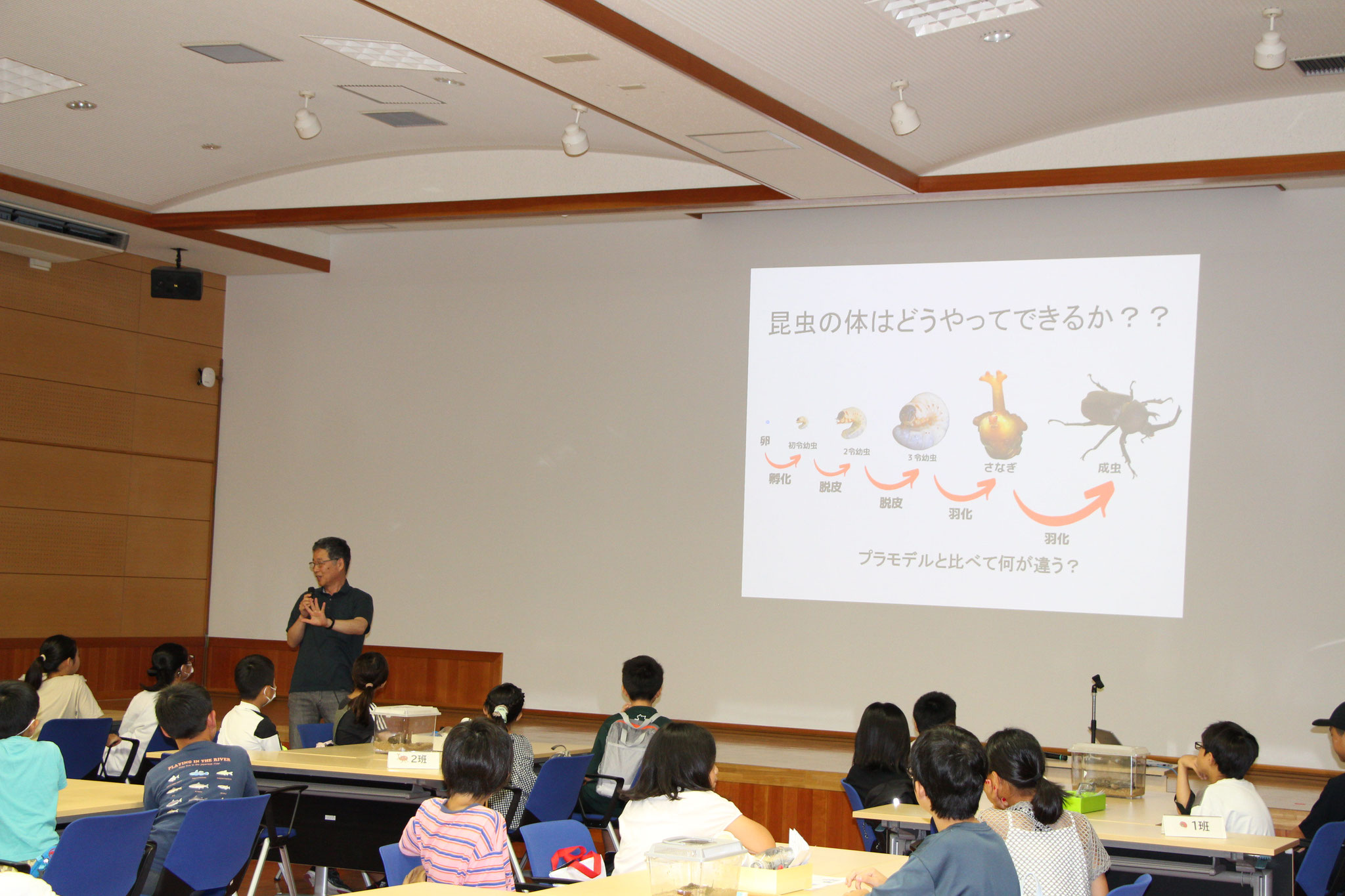 まずは、カブトムシの幼虫の意外な穴掘り技術のお話からはじまりました。